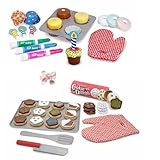 This 3 item bundle includes cupcake set, cookie playset, and a hair bow. Be sure your little baker uses the oven mitt to remove these 4 delectable-looking wooden cupcakes from their cupcake baking tray. The cupcake set has 3 dry erase markers shaped like icing tubes to decorate the smooth, removable, wipe-off cupcake tops. With colorful baking cupcake sleeves and decorative wooden candles, these low-cal cupcakes will be the hit of birthday and tea parties! The wooden cookie set includes 12 wooden, sliceable cookies, 12 toppings, a wooden knife, spatula, cookie sheet and a kitchen mitt for safe, "low-calorie" play! The cookies store in a durable dough tube. This set comes with an exclusive, "My Cute Dressups" hair bow not found anywhere else. Color of bow may vary based on availability . Read more