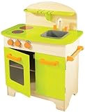 Educo Gourmet Chef Kitchen — Green Back-to-basic quality is the charm of this wood-constructed, child-sized kitchen set. Chunky, colorful knobs turn up the imaginary heat, reinforcing number recognition as your kids play. The roomy hutch and cupboard easily store dinnerware, pots and pans. Sophisticated design elements, like the contemporary wooden faucet, reflect the attention to detail. Bright accent colors put the finishing touch on this sweet set. Why You’ll Love It: The clean, natural craftsmanship has gourmet-quality appeal. Age: 3 years and up Features “On and “off burner knobs Made of wood and finished in nontoxic paints Adult assembly required (wrench included) Read more