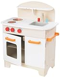 Educo Gourmet Chef Kitchen — White Back-to-basic quality is the charm of this wood-constructed, child-sized kitchen set. Chunky, colorful knobs turn up the imaginary heat, reinforcing number recognition as your kids play. The roomy hutch and cupboard easily store dinnerware, pots and pans. Sophisticated design elements, like the contemporary wooden faucet, reflect the attention to detail. Bright accent colors put the finishing touch on this sweet set. Why You’ll Love It: The clean, natural craftsmanship has gourmet-quality appeal. Age: 3 years and up Features “On and “off burner knobs Made of wood and finished in nontoxic paints Adult assembly required (wrench included) Read more
