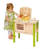 Kid cooks will love whipping up scrumptious faux-feasts with this beautiful wooden Mini Kitchen that's just their size. It features a sink, stovetop, cupboard, oven with see-through plexiglass door, and backsplash with three pegs, and includes 23 wooden pieces of play cookware, food and utensils. Its compact footprint fits perfectly in small spaces. Designed in Switzerland, it's made in China from Baltic birch. Simple assembly required. Sorry, gift wrap not available. For ages 3 and up. Size: 21-1/2"L x 12-1/2"W x 31"H. Our adorable Mushroom Apron protects kids' clothes during cooking, gardening or art projects. Made from green handwoven cotton with adjustable straps, it fits most children ages 3 - 6 years. A $120.00 Value for Only $99.00! Read more