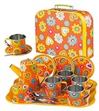 Join kids at noon for tea and cookies! Brightly colored with flowers and hearts, the carrying case stores tea service for 4 including mugs, plates, teapot, sugar container and spoons. Imaginative play for ages 3 and up. Read more